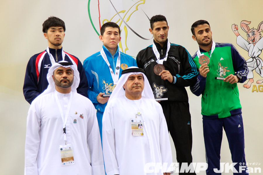 На фото медалисты Чемпионата Азии по каратэ, вес/кат: -67кг, слева-направо: